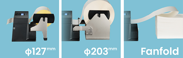 | 纸卷直径 | 最大外径127mm、纸芯直径:25.4~76mm(使用标准纸卷架时) |